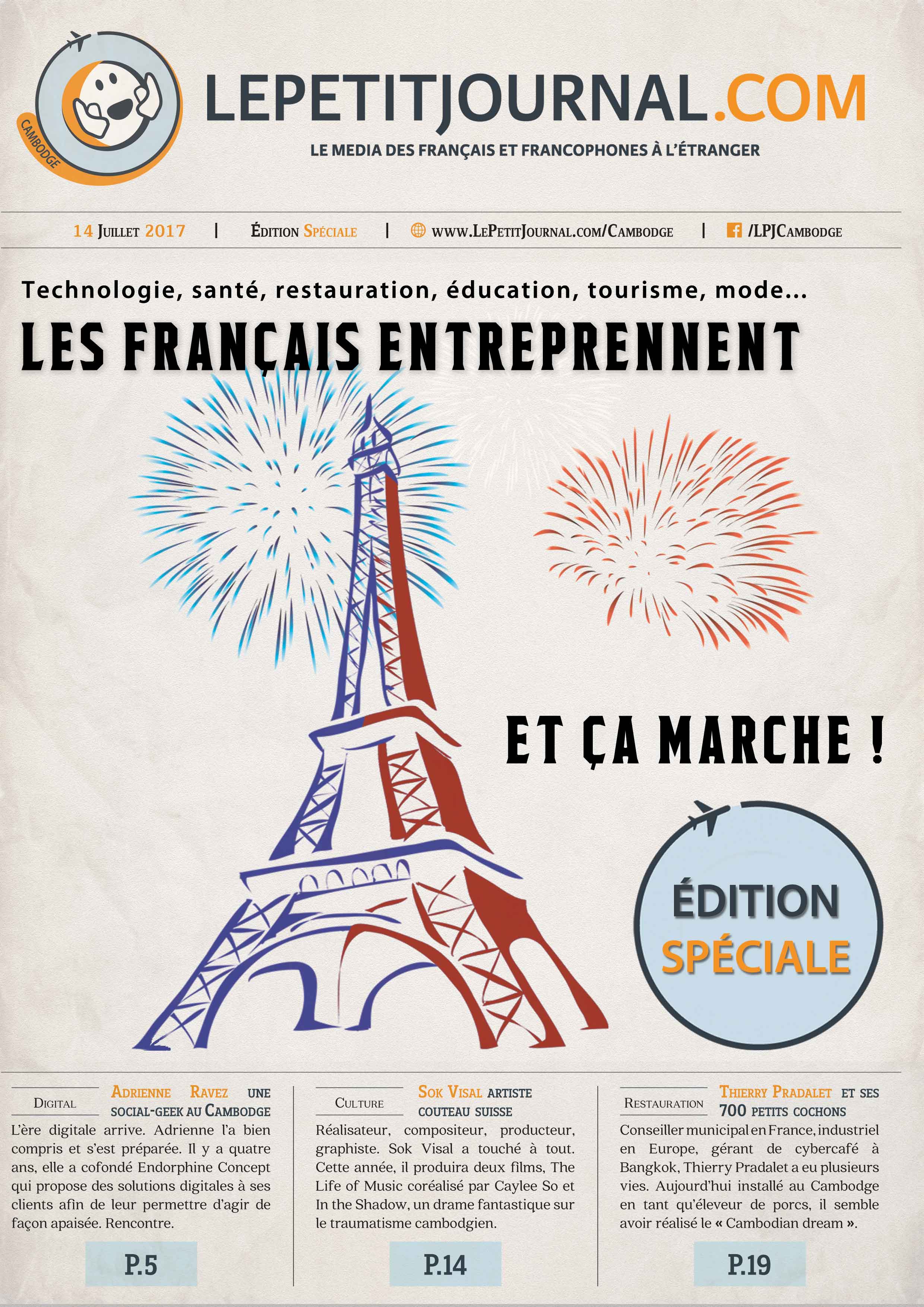 To celebrate the French National Day, Le Petit Journal has created a special edition and 10.000 prints have been launched. Here, two different designs for the cover page with on the right, a vintage style honoring the origins of the newspaper and on the left, a much more modern style in phase with the subject of the magazine, namely the new entrepreneurs.